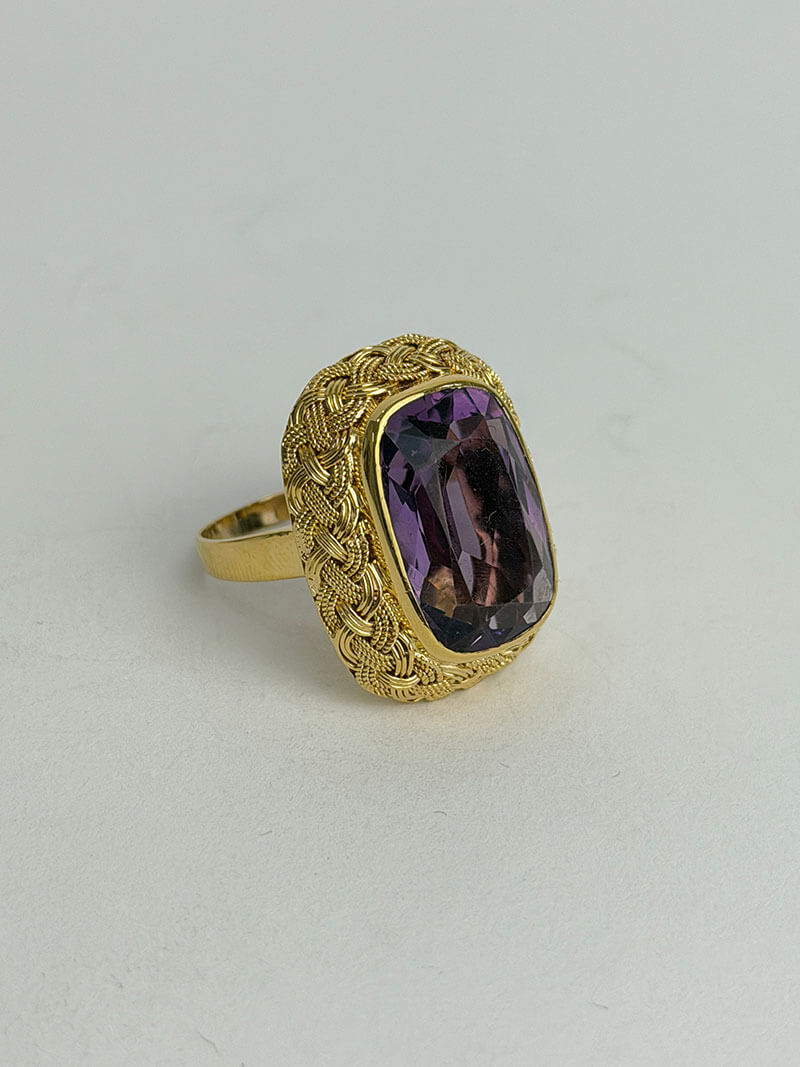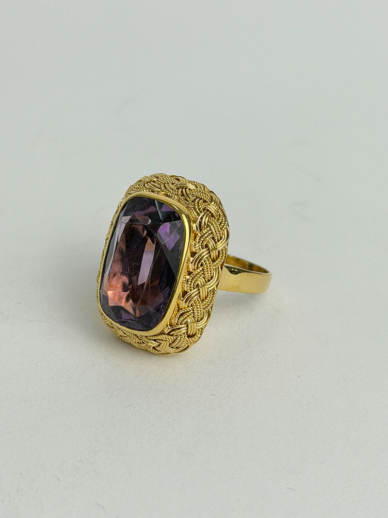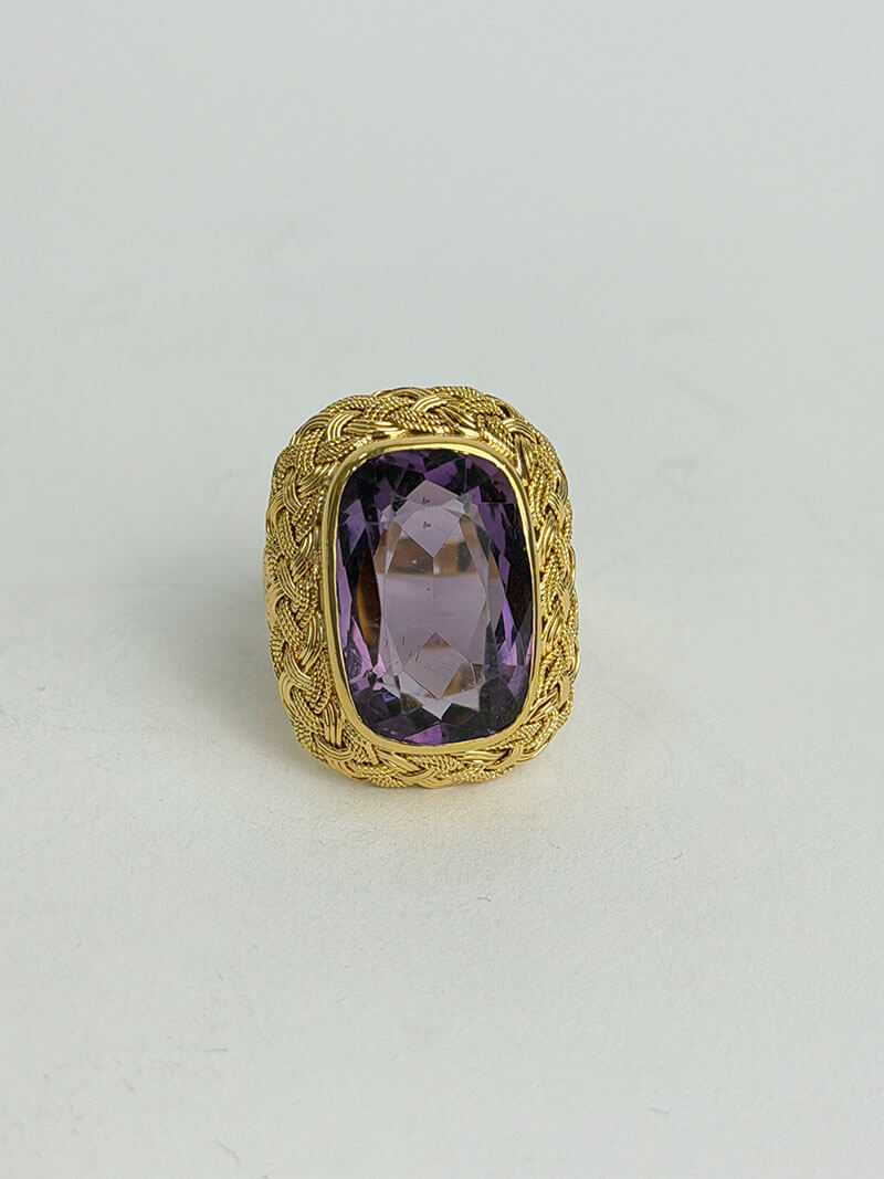 Every great success story deserves a crown one that doesn’t follow trends, but instead honors the foundation of its own journey. The Aureum Regal Amethyst Ring is a tribute to things built to last. At its heart sits a commanding 12 carat natural amethyst. Its cushion-cut facets reveal deep violet hues a color historically tied to the serenity and inner strength required to lead a life, or a home, with grace.