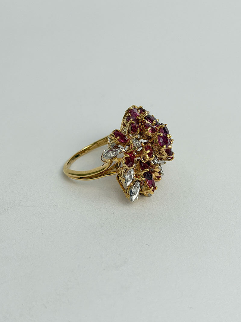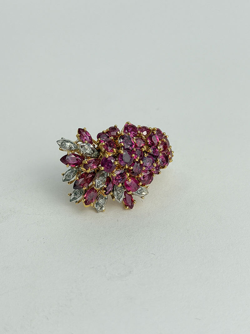 Some promises are spoken, others are etched in the soul, but only the most extraordinary are transformed into a legacy you can touch. The Imperial Rosarium Ring is the culmination of that shared narrative. Its design features 7.5 carats of natural pink rubies in a marquise cut, hand-selected for a rare, deep color that evokes the warmth of a passion that has matured into unwavering devotion. These gems aren’t just set; they are orchestrated into a multi-layered “Architecture of Resilience” symbolizing the decades of experiences, challenges, and victories that have shaped your union.