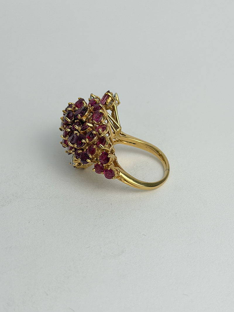 The true power of this piece lies in its ability to reflect the clarity of a promise kept. Each ruby is guarded by natural diamonds (1.2 ctw) that act as points of pure light, elevating the piece to the highest standards of global fine jewelry. The 18K yellow gold setting has been crafted with a vision of bespoke luxury, where the metal isn’t just a base, but a solid horizon ensuring the symbol of your union remains as eternal as the vow it represents.